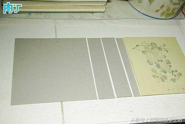 6剪两两对称的四块灰纸板(淘宝可以买到,我用的是厚度1.5毫米那种,稍厚一点也可以),灰纸板的尺寸跟台历纸的关系如图。