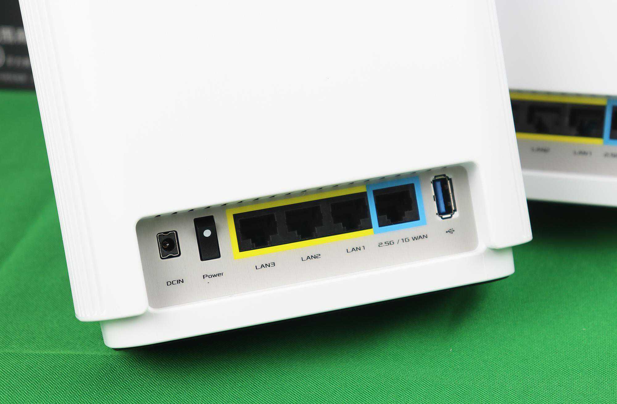 华硕灵耀路由AX6600的接口十分丰富,从左到右分别是DCIN电源线接口,Power电源开关,LAN1-3网线接口,2.5G/1GWAN千兆光纤接口,USB接口。