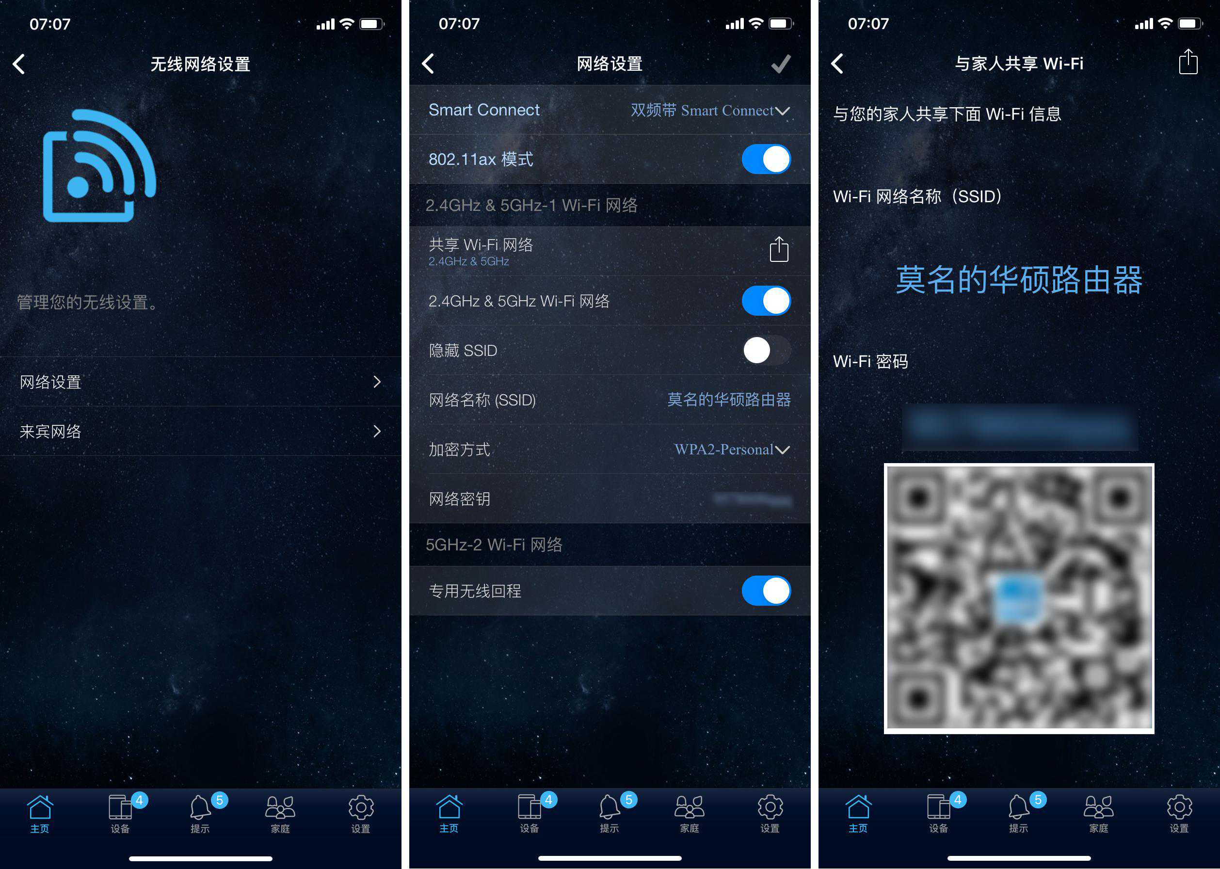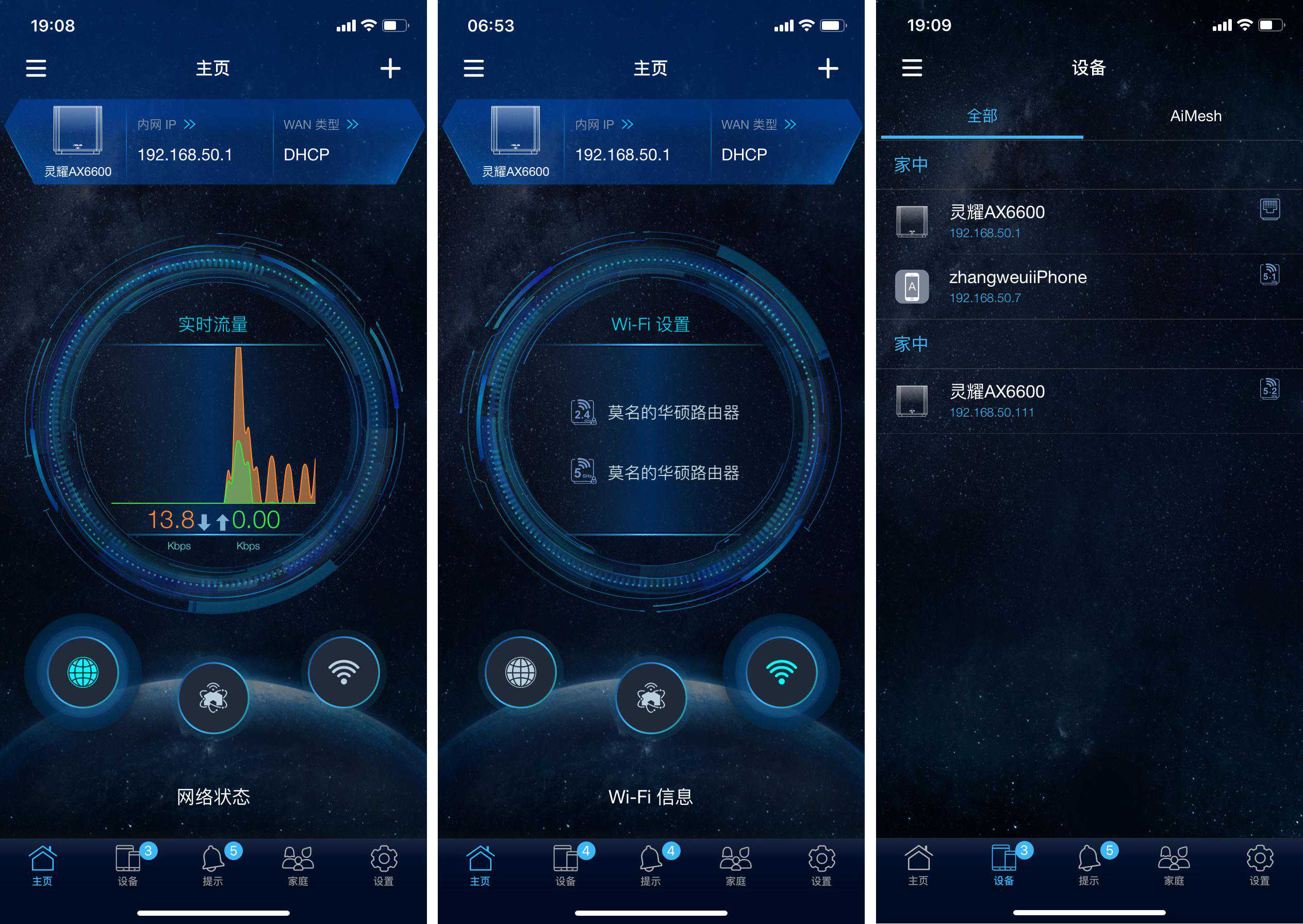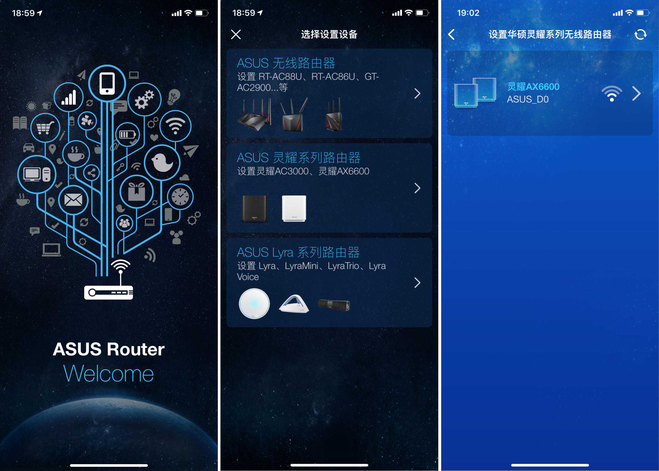 对于大部分路由器而言,手机APP设置上网已经成为主流,而给华硕灵耀AX6600设置上网,只需要扫描包装盒二维码,下载ASUSRouterAPP,当然在应用商店搜索也可以,或者扫码说明书上的二维码。而进入到APP界面,这估计是我使用过UI设计最炫酷的路由器APP了。
