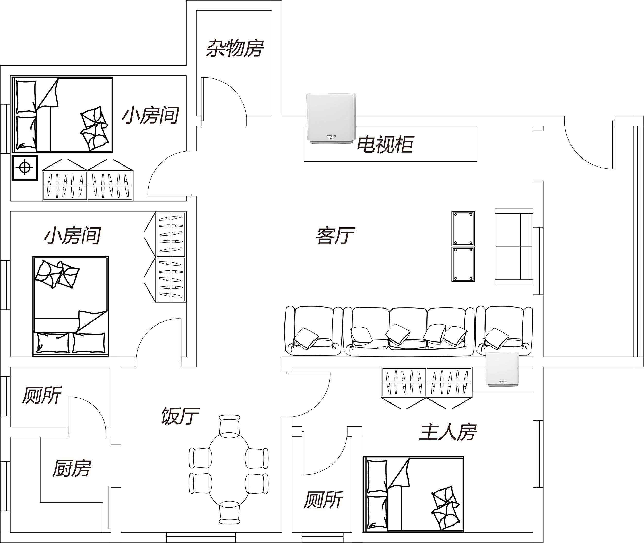 普通单一的路由器,其实大部分人都是选择放在客厅,因为光猫一般都在客厅,而使用灵耀路由AX6600则可以客厅放一个连接光猫,在房间再放一个,这样覆盖的范围就最为全面了,而我家里面积是150平方,之前用的路由器,基本在隔墙的小房间就收不到满格的WIFI信号了,就算收到也只有两格,网速时有时无,玩游戏就不要指望了,只能在客厅玩。下面来测试一下在家里每个角度的信号强度如何。