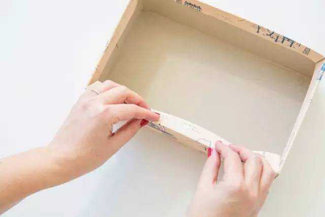 剪掉高出抽屉的大半截,剩下合适高度的盒子,用自己喜欢的贴纸去装饰。