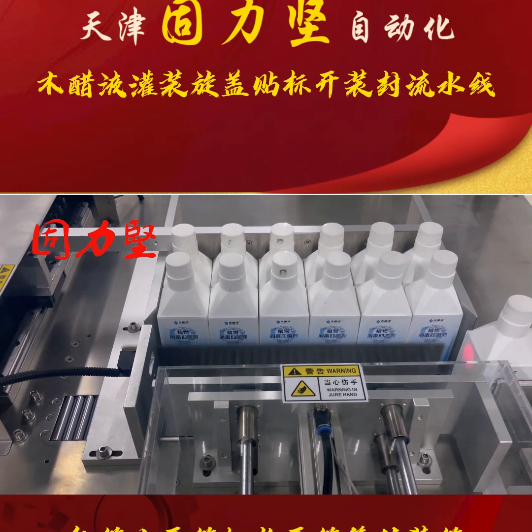 天津固力坚自动化:木醋液灌装旋盖贴标开装封流水线,下功夫,做好机器!