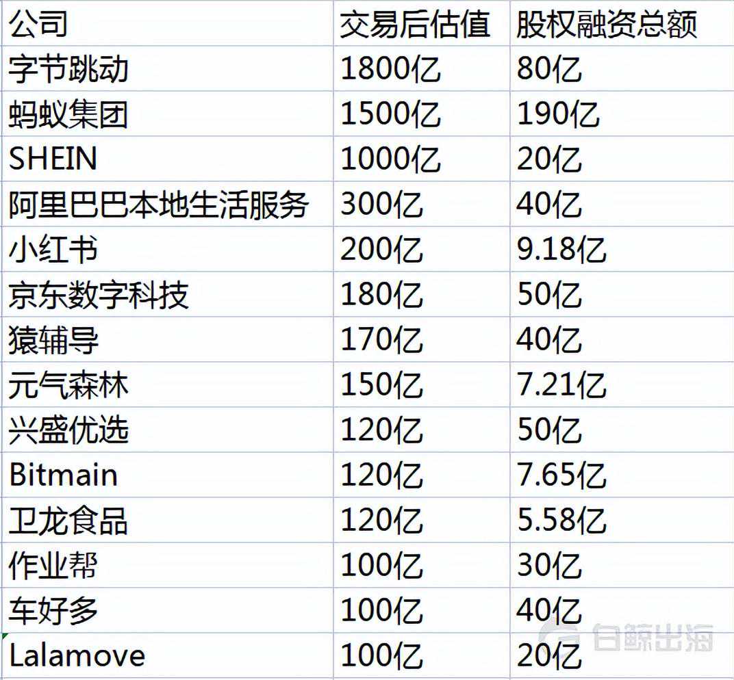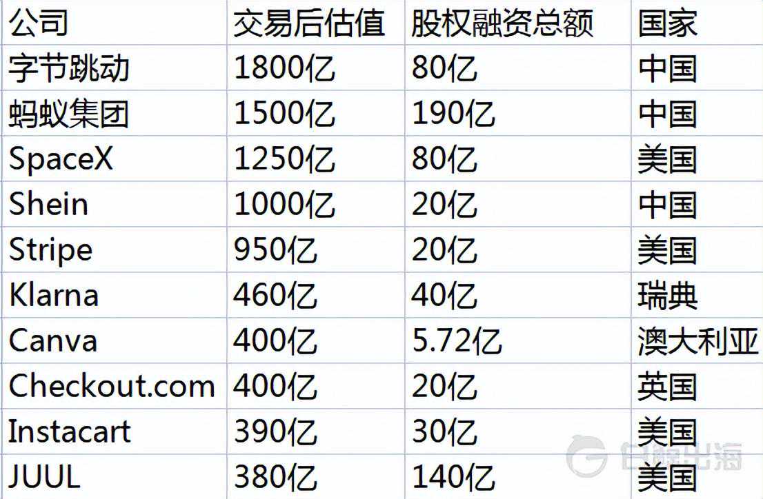 在这项榜单中,最大的独角兽自不必说,字节跳动凭借1800亿美元的估值居榜单之首。