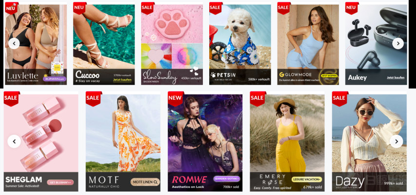 从SHEIN开始进入大众视野,它在全球扩张的脚步就越来越快。目前SHEIN旗下共有11个品牌,大类上覆盖女装、彩妆、3C、宠物用品及服饰,细分类目上覆盖泳衣、休闲服装、内衣等。在出海市场上,除了最大的美国市场,SHEIN在中东、拉美、日本市场的也有很大声量,相比之下,在东南亚的成绩要差一些,2021年,SHEIN还退出了东南亚最大的市场印尼。