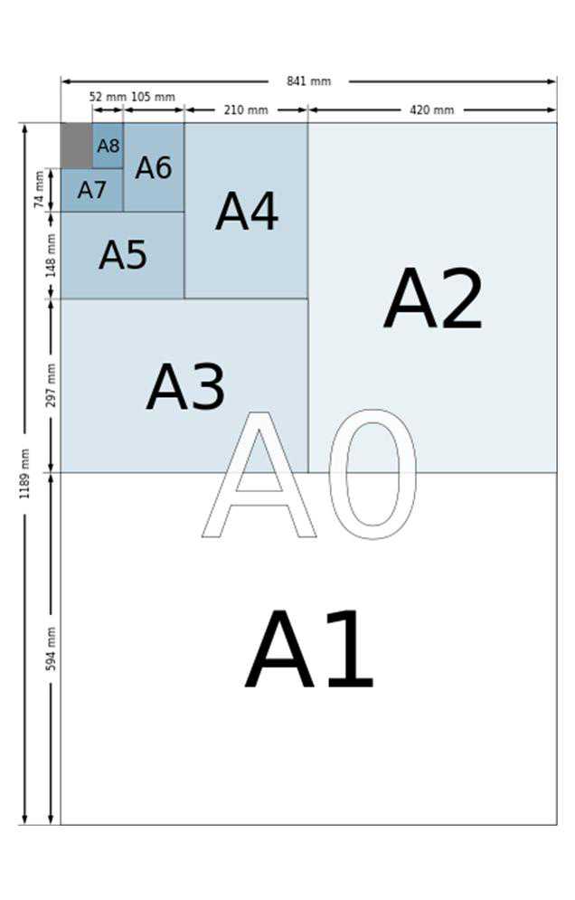 说A4之前我们先说A0,A0的纸张面积正好是1m²,纸宽841mm,长1189mm。把A0纸对折就得到纸宽594mm,长841mm的A1纸了,以此类推,对折四次后就得到了我们常用的纸宽210mm,长294mm的A4纸了。无论是A0纸,还有A1,A2,A3,A4,它们的比例均为1:1.414。采用这个比例是因为无论怎么将长边对折分割,都不会改变纸张原来的比例关系。这样在大量的生产过程中不会造成任何的纸张浪费。