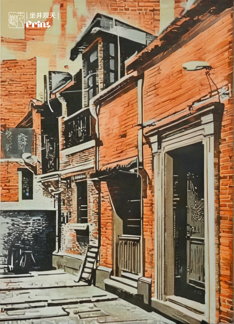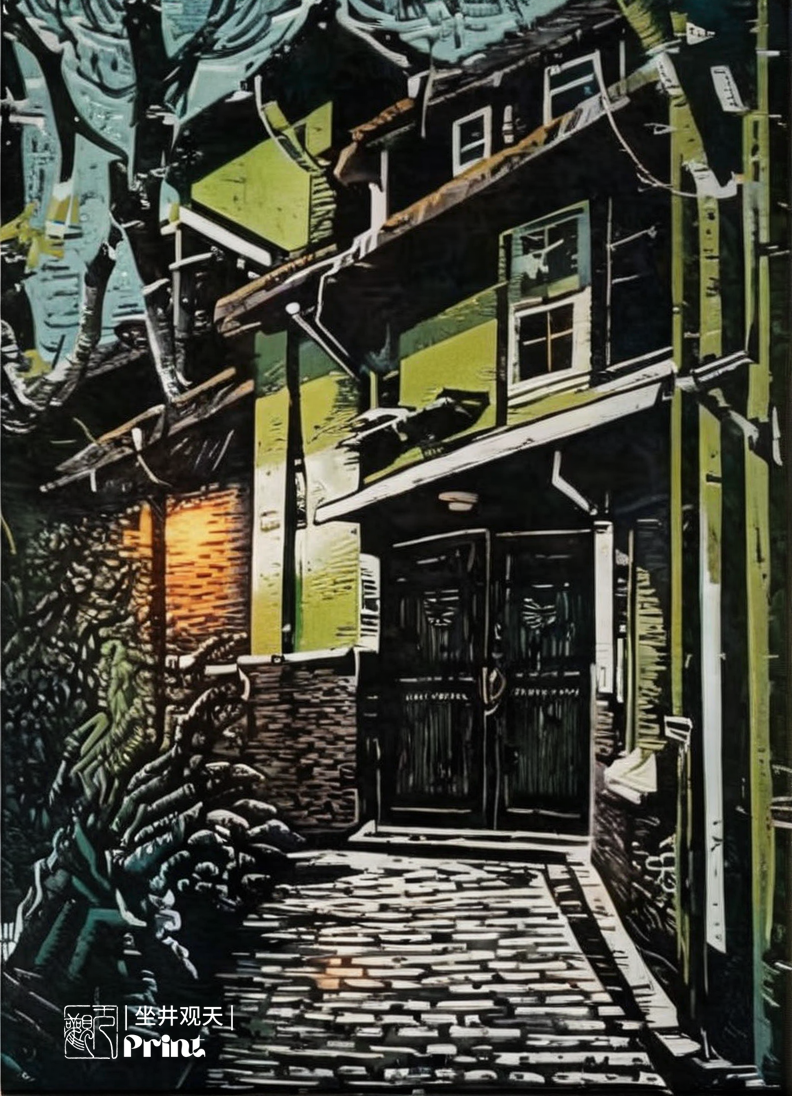 版画风格AI绘画《上海弄堂消失的回忆》分享。采用stablediffusion软件生成。操作参数:Steps:30,Sampler:DPM++3MSDEKarras,CFGscale:15,Size:792x1096,Modelhash:6e0ba74ac1,Model:sdvn7Nijistylexl_v1,Denoisingstrength:0.57,Lorahashes:"ChinesePrintmaking_中国版画_xl():ea8ffd7252e5,Shanghaistreet-000004:6ecc19be917a",Version:。提示词:版画风格,(木刻杰作:1.4),(印刷风格:1.3),特写(平面风格:1.3),(超现实主义描绘:1.1),现实主义,超细节,黑色电影,模拟风格,柔和色彩搭配,SubsurfaceScatter,重阴影,(BW:1.5),杰作,最佳质量,复杂性,高细节,上海弄堂建筑,住宅区,物品,树木,木纹底色,lora:中国版画_中国版画_xl():1,lora:上海街道-000004:1,