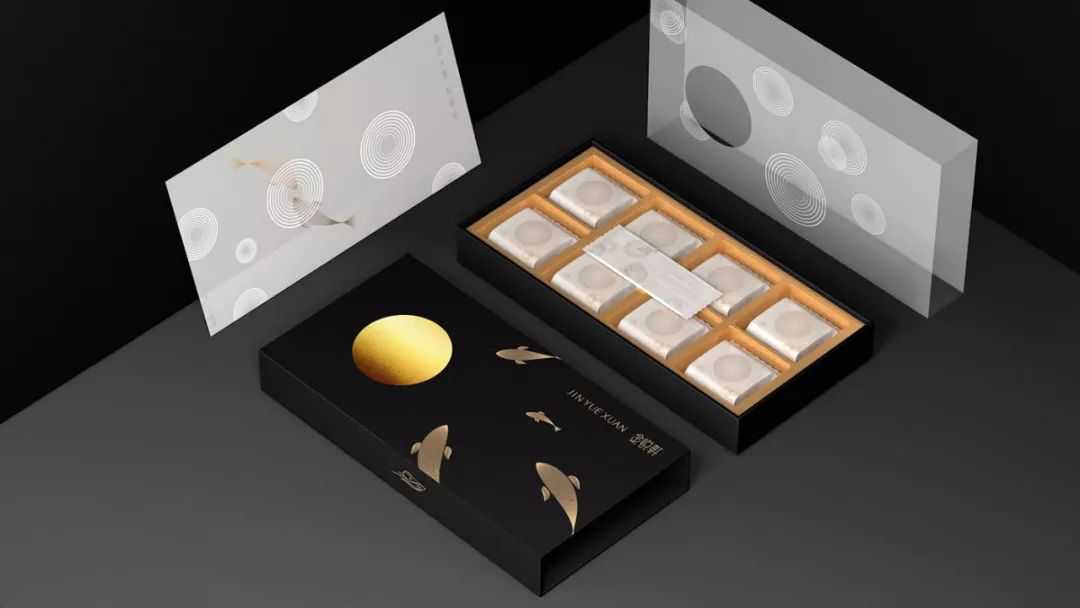 以中国传统吉祥图腾——锦鲤作为主题进行月饼礼盒的设计,以锦鲤为核心,结合月、云、水、松、石等具有美好寓意的传统意象,创造具有设计感的节日视觉。