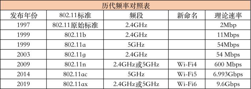 价格飙升的背后从WiFi的历代迭代来看,自1997年到2019年间WiFi技术经历了六代技术革新。从2018年开始,WiFi联盟开始重新命名WiFi标准,将WiFi按代际以数字命名。最新一代WiFi技术标准802.11ax按照新命名方式被命名为WiFi6,目前市场的802.11n和802.11ac则分别命名为WiFi4和WiFi5。