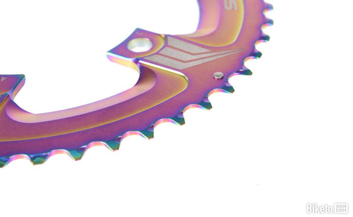 由于小盘片长期隐藏在链条与大盘片之内,并没有跟随大盘片搭配相同的颜色,而是单一的黑色(毕竟在里面,你配得多精彩也没人看到,不是么……)。