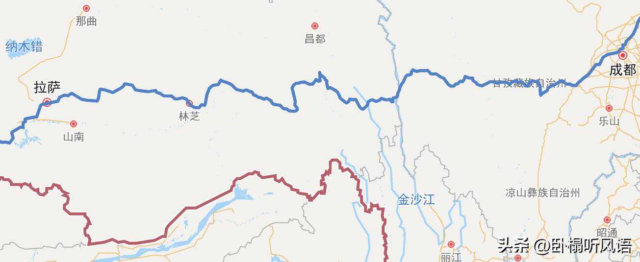 成都→雅安→新沟村→泸定县→折多塘→新都桥→相克宗→红龙乡→理塘→禾尼乡→巴塘→芒康→如美镇→东达山→左贡县→邦达镇→八宿县→然乌镇→波密县→通麦镇→鲁朗镇→八一镇→工布江达→松多村→拉萨。