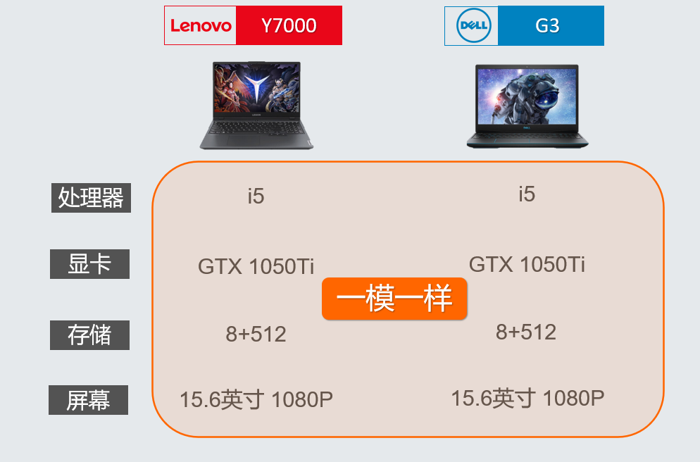 二,只看表面的配置参数这里让我想到了一个特别经典的案例,这个我经常拿来跟人举例,好像是去年,额,已经2021了,应该是前年了,有个朋友咨询我应该买什么电脑,我给他推荐的联想的Y7000,并且跟他说了买什么什么配置。然后过了一会儿,他打电话跟我我,他最终买了戴尔G3,理由是,这个电脑和我给他讲的配置一模一样,并且联想和戴尔都是大牌子,然后戴尔这个还稍微便宜点,于是就买了G3。
