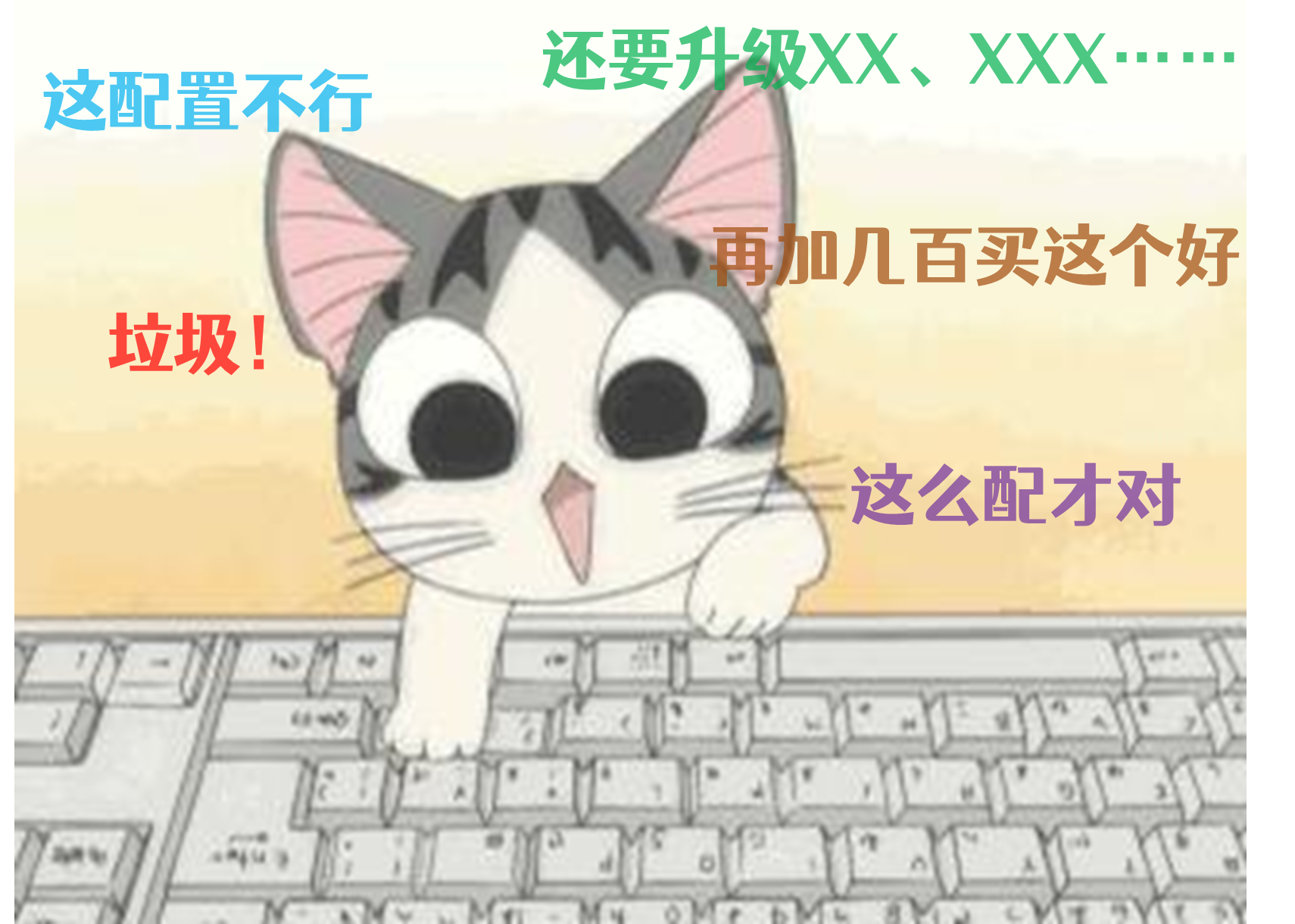 现在“键盘侠”的数量越来越多,你经常会听到这样的言论:“这配置不行,太垃圾了;再加XX钱就能提升很大,冲吧!我说的这个肯定比你那个好,好在XX地方”其实他很可能是道听途说了几个词过来吹吹牛,花的也不是他的钱,但是你听了他真去加钱买,那亏的可是自己。