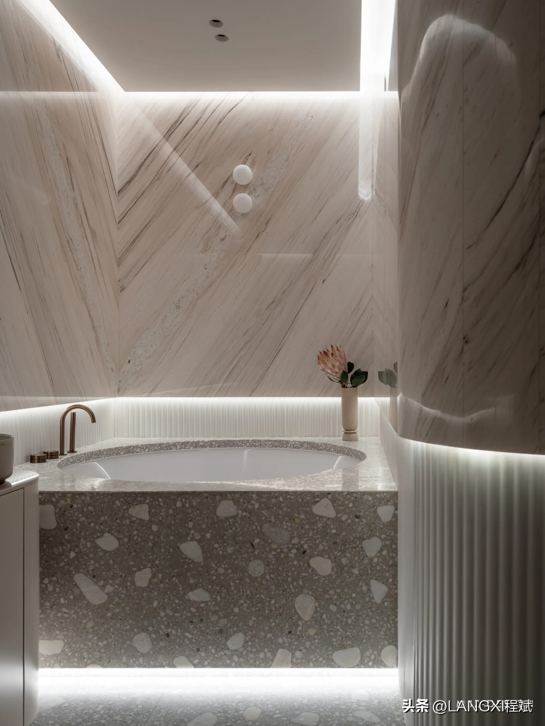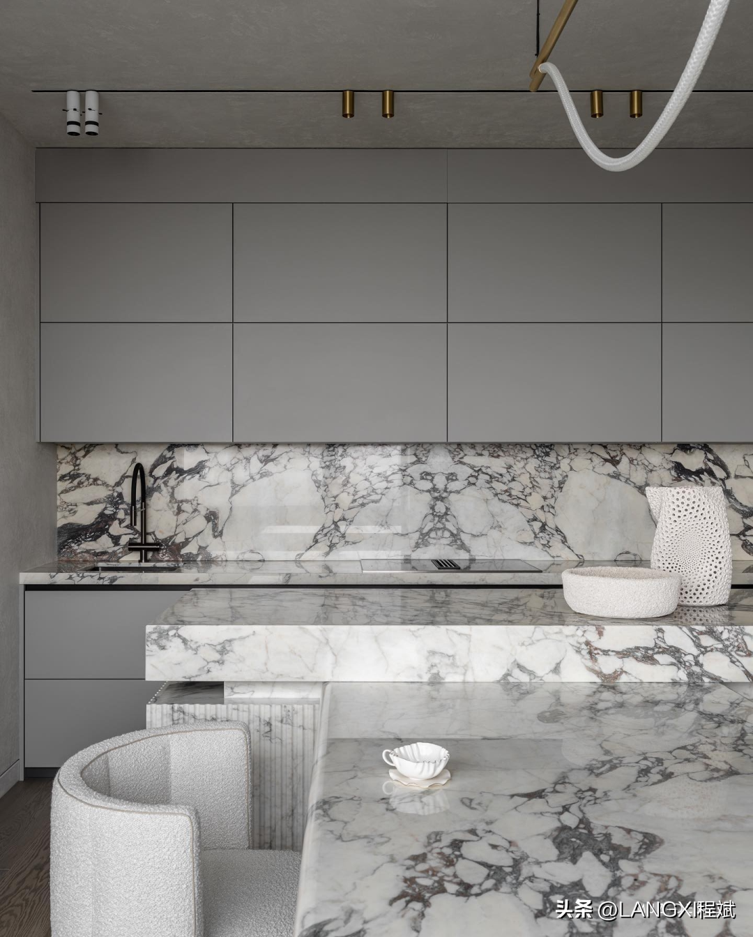 这个空间因其纯粹的几何形状和多样的纹理而被人们记住,粗随的石灰与精致的大衣和毛黑布并置,黄铜亮点带来温暖,活跃的大理石图案使内敛的调色板充满活力,我们拆除了巨大的窗台,用对流器取代了笨重的散热器,其格栅由与接木地板相同的木材制成。所以现在窗外的风暑看起来就像巨幅画作。