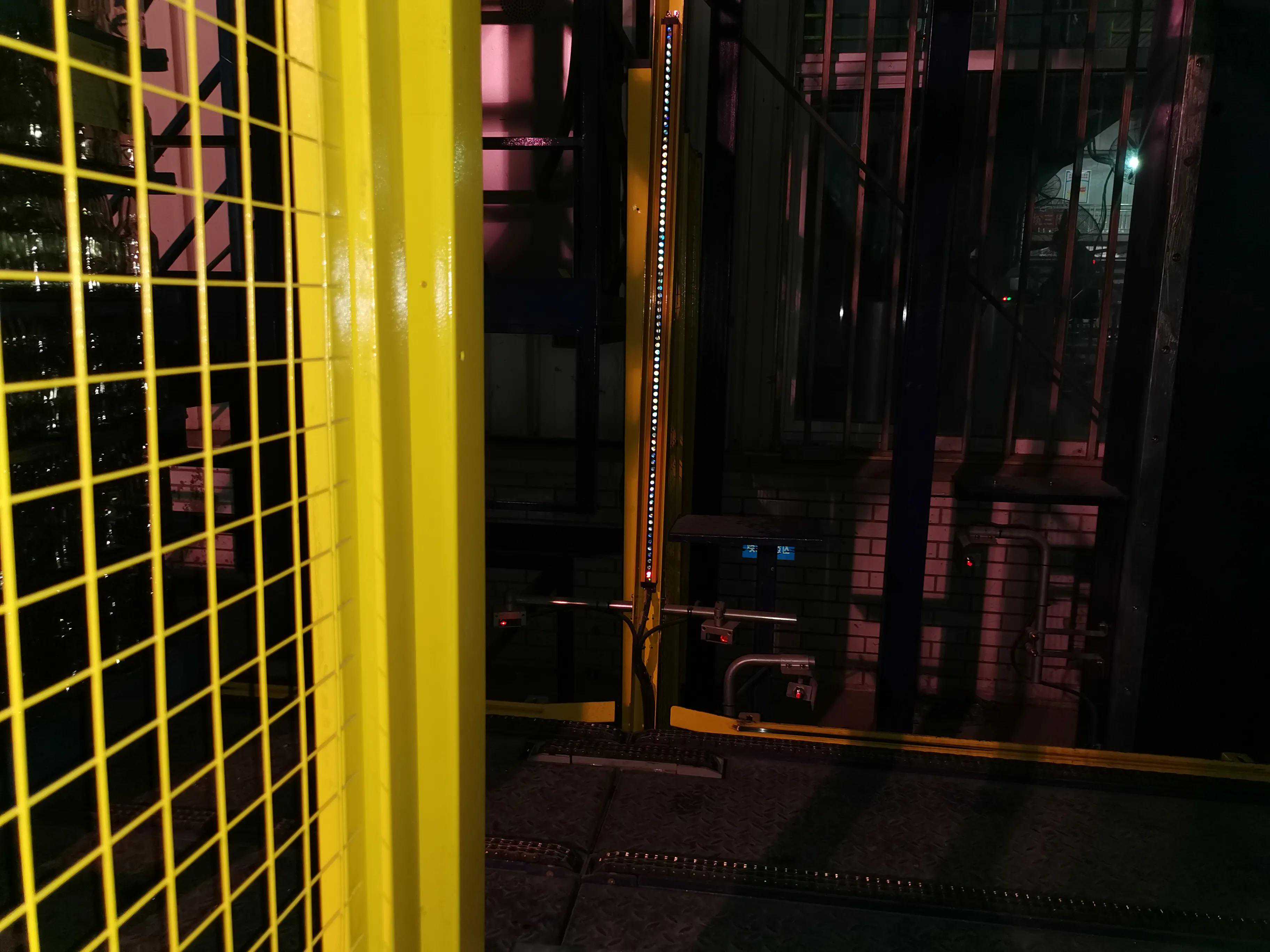 卸垛机由多个定位光电感应器、限位光电感应器和两个安全光栅组成,垛区定位光电、瓶夹安全保护光电、主机定位光电、赶瓶竿定位光电、过渡平台升降保护光电、过渡平台有瓶感应光电、托盘定位光电、隔板定位光电、主机安全插销光电、过渡平台安全插销光电,在有物体遮挡时光电灯为黄色、无遮挡物时为绿色,以上需要多多观察和摸索,对及时排除故障十分关键。