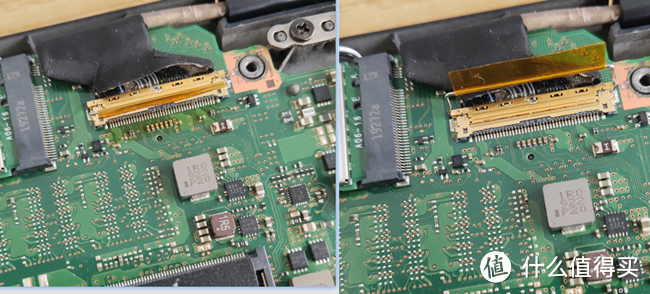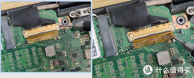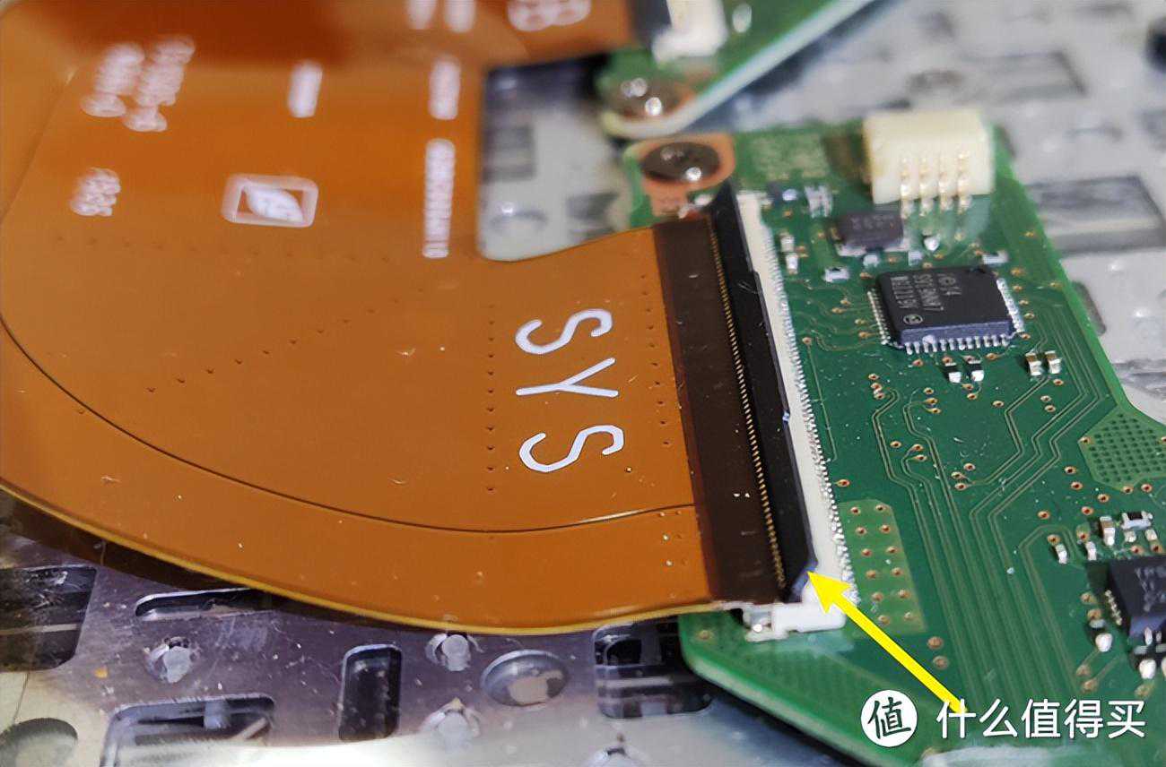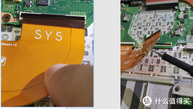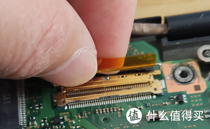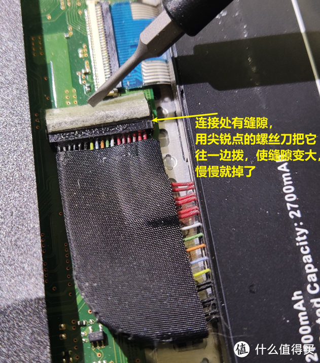根据观察,黄色椭圆圈1号和2号位置连接了电池和主板之间,只有这两处像是电池给主板的供电接口,猜测1号接口可能性更高一些,因为1号线比较宽,2号线就两根好像连接的是音响,决定先拆1号再拆2号,之后再拆内存