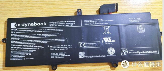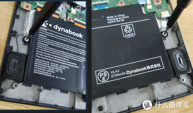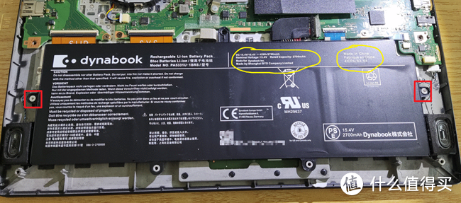 再之后就是把电池两边的两个螺丝卸掉,就可以把电池拿下来了,从电池上面标注可以看出,电池容量是42Wh/2700mAh,还显示“Madeinchina”,”MadebyShanghaiBYDCompaneLimited”,比亚迪上海产的,中国制造牛啤啊