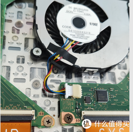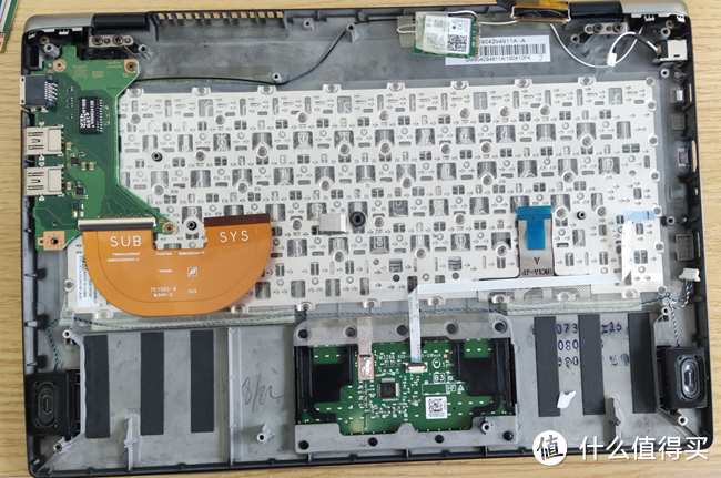 看到电池底下是触摸板电路,其它好像没有,从连接线观察到触摸板连接的是5号接口