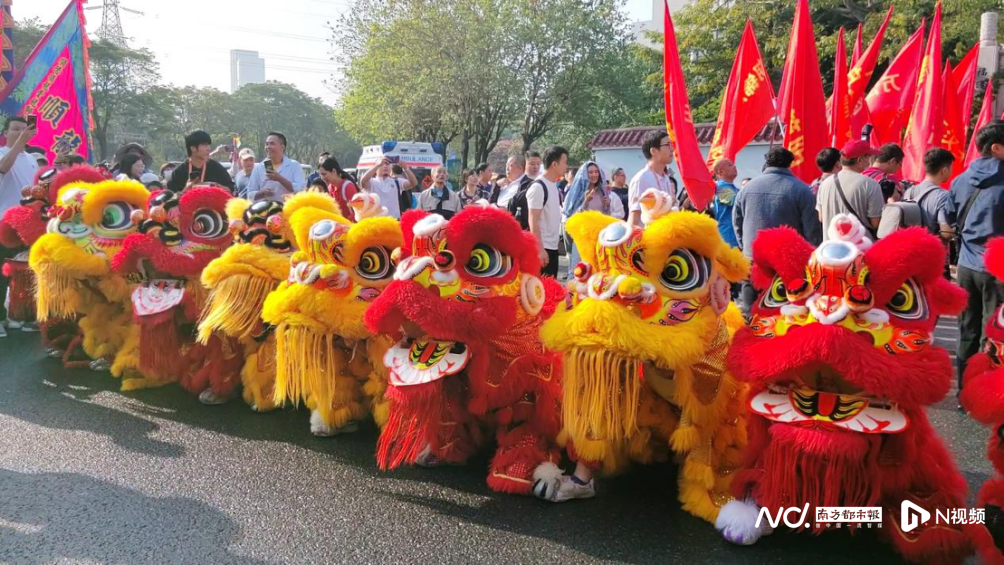“蛟龙”竞渡,百龙巡游。11月26日上午,“行运一条龙”祈福巡游活动在顺德大良举行,超1200人的巡游队伍集结龙母仪仗、岸上龙舟、人龙舞、八音锣鼓柜、龙舟说唱等10余个方阵,环绕顺峰山,吸引数万名市民游客围观,共同行龙运,接龙福。