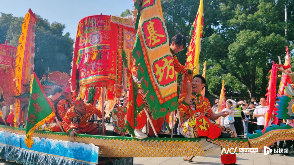 最终,浩浩荡荡的巡游队伍通过顺峰山公园牌坊,即“过龙门”,如同鱼跃龙门,传达步步高升的寓意,也喻指顺德人传承发扬着龙舟勠力拼搏、砥砺奋进、敢想敢干的精神。
