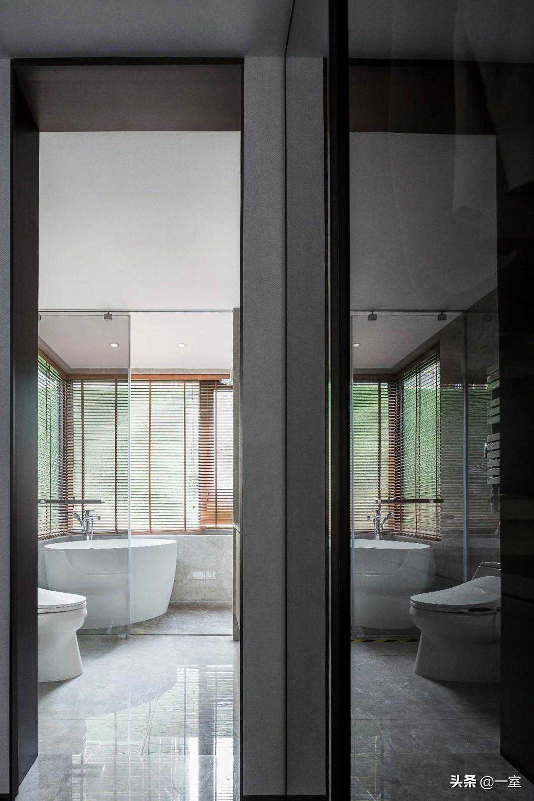 在设计中不放过任何一个可以看得见风景的角落,同时为了更好地让位于自然山水,空间中多使用灰色的石材、木饰面等低饱和度材料,让空间更加沉静。