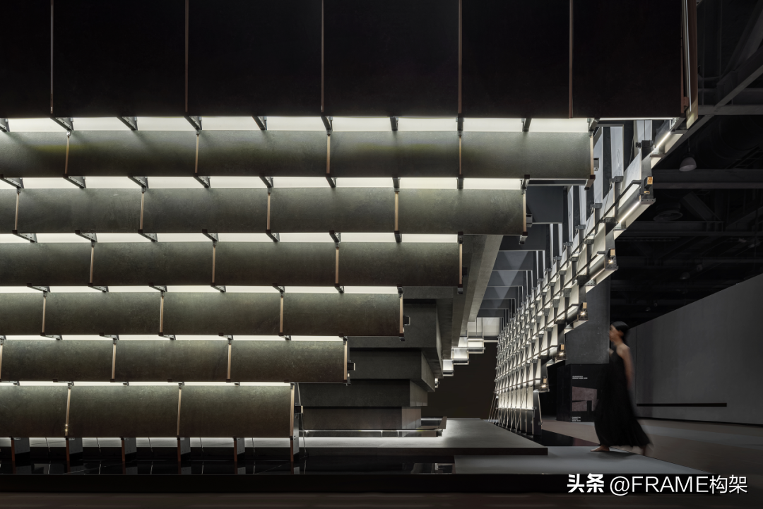 无间之间是一个岩板展厅,甲方唯一的要求是足够明亮。于是我把它想象成一个发光体的内部世界来设计。