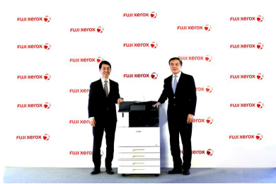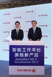 富士施乐中国及东亚区执行总经理、富士施乐(中国)有限公司董事长内藤昌继、富士施乐(中国)有限公司总裁余树章为新品揭幕