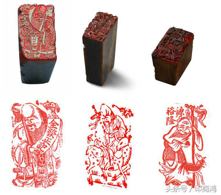 【由左至右分别是“福禄寿”牛角、黄杨木、果木商印】