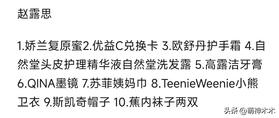 目前来看,礼盒中包含品牌数量最多的是龚俊和毛晓彤,零零散散一共送了12个品牌的产品,虽然并没有太多高奢品牌,但也能看出这两人的带货口碑想来是很高了。