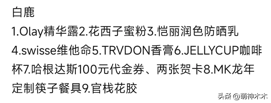 另外两个品牌的产品也都是唇膏,洗护套装之类的东西,一共7样礼物,甚至都不如小花。
