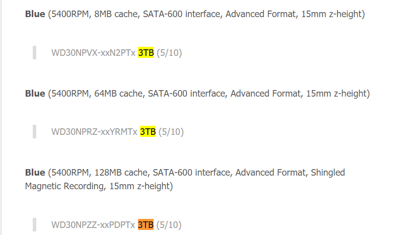 企业盘和NAS盘里,需要注意避开西数普通红盘系列