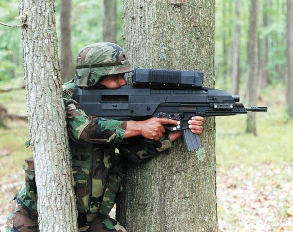 1999年,美国陆军选中了ATK公司的OICW样枪,作为下一代步兵武器,并定编号为XM29。XM29由步枪(30发弹匣)和20毫米榴弹发射器(6发弹匣)以及火控系统组成,其中火控系统具备测瞄一体功能,对目标的定位和瞄准能力大大增强,还具备夜战能力;新的空炸智能榴弹可以杀伤距离1000米的目标;武器与“陆地勇士”系统搭配,可在数字化系统的配合下进行多样任务行动。
