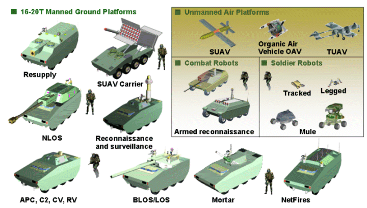 ▲FCS项目的示意图,这曾是美国陆军最大的现代化装备项目