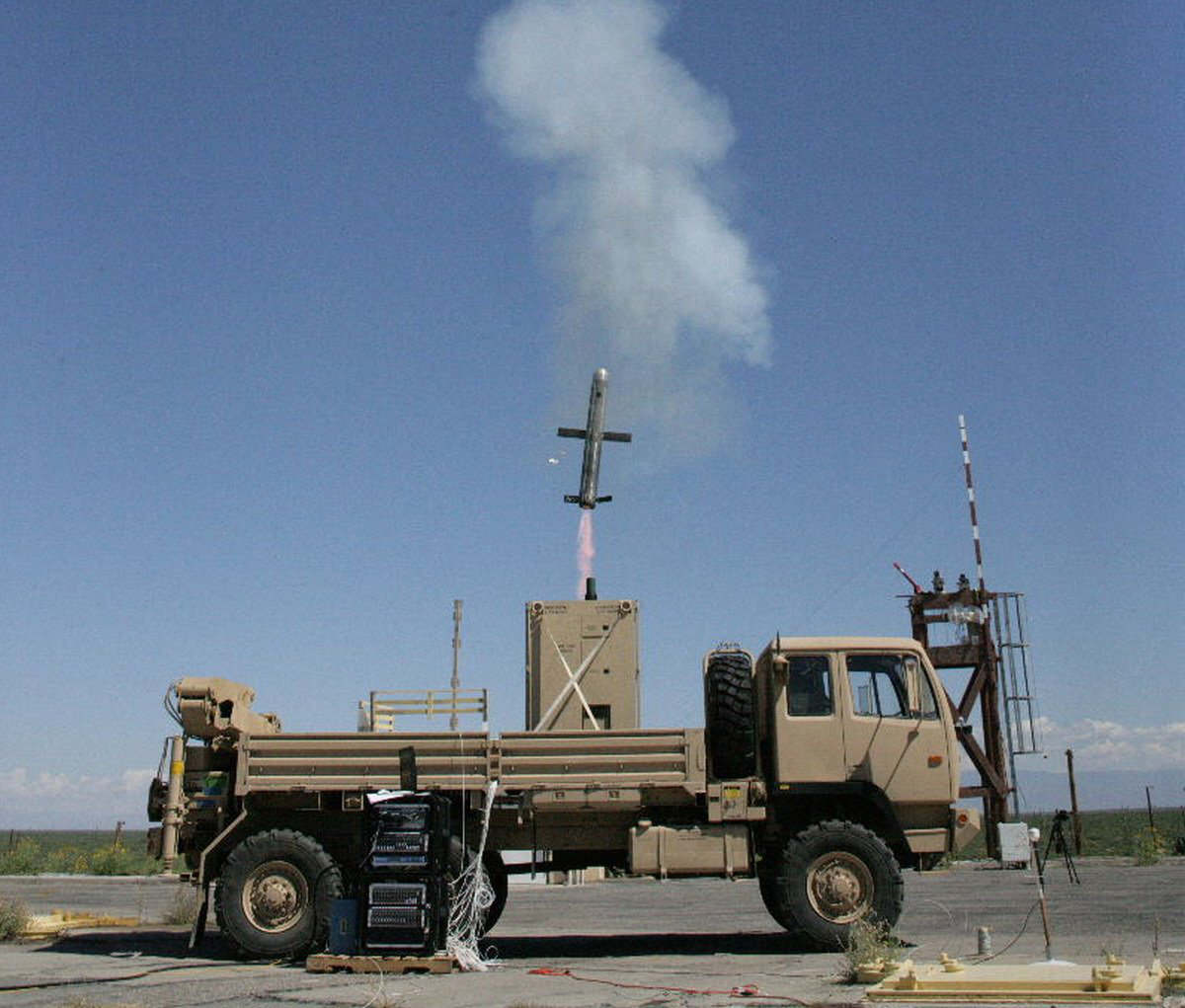▲“网火”系统由雷神和洛克希德·马丁公司联合研制,两个公司根据军方要求分别研制了两种导弹,并共同解决箱式发射单元