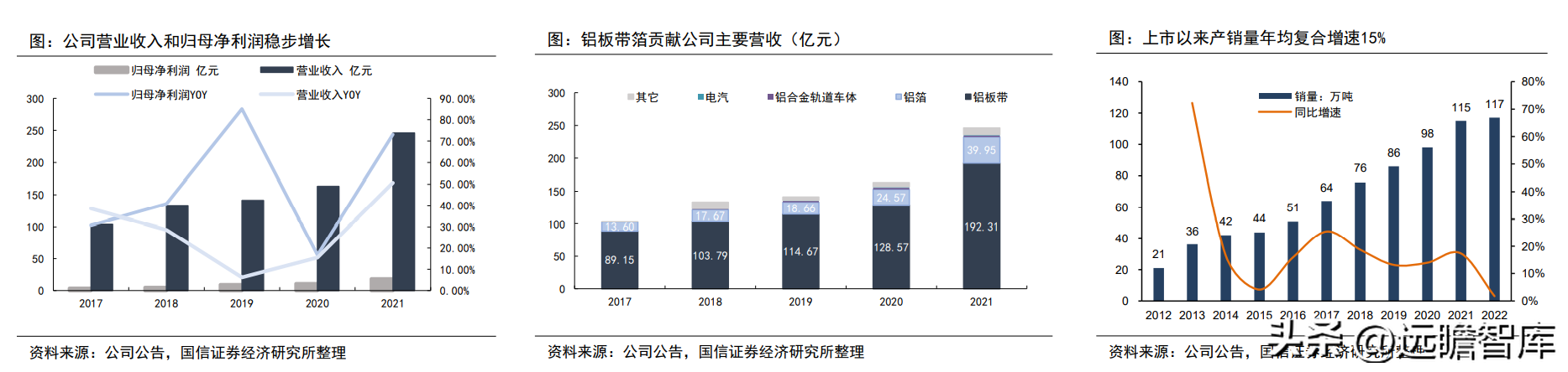 ③2021年高基数:公司自上市以来铝板带箔销量年均增速达15%,从绝对量来看,近几年每年增加10万吨左右。