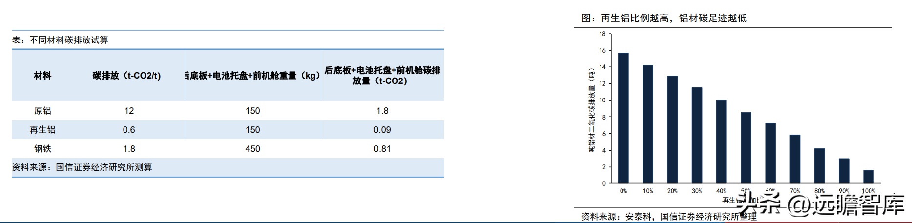 ◆虽然铝作为一种轻量化材料需求前景广阔,但原铝的高碳排放可能限制铝的应用,再生铝的优势将凸显。