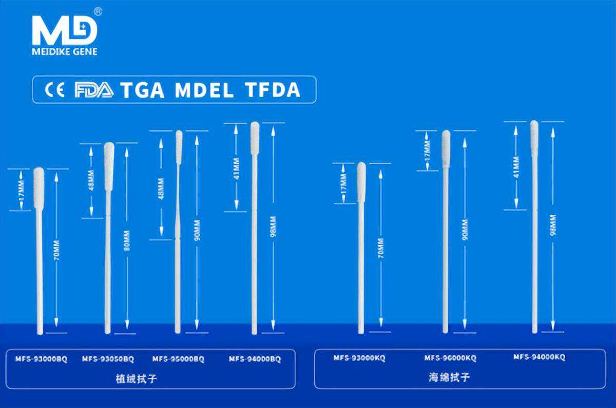 3、MFS-93000BQ、MFS-93050BQ、MFS-94000BQ、MFS-95000BQ由ABS杆+尼龙植绒头构成,用于采集患者鼻腔、前鼻等呼吸道分泌物标本用于抗原检测自测,植绒材质采集释放标本效果佳,更加有利于检测结果的准确性。