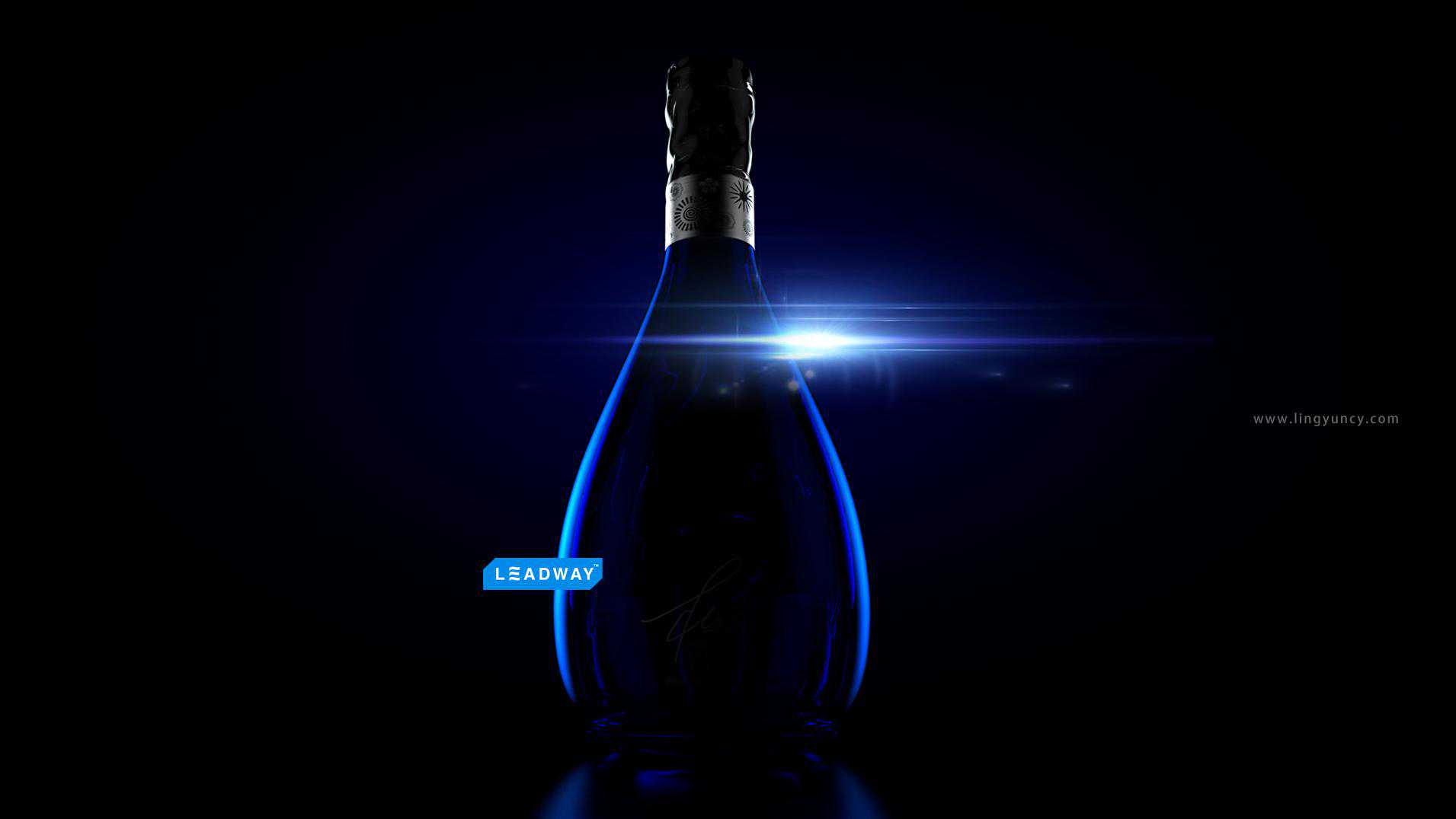 酒瓶采用蓝色水晶玻璃打造,创造性的讲品牌名字从背面向内凹陷,一方面增加产品观赏性,另外内凹的结构也更加方便抓握。