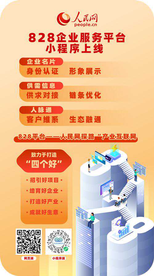 人民网北京(记者张文婷)人民网“828企业服务平台”微信小程序今天上线,推出企业名片、人脉通、供求信息发布展示等功能。