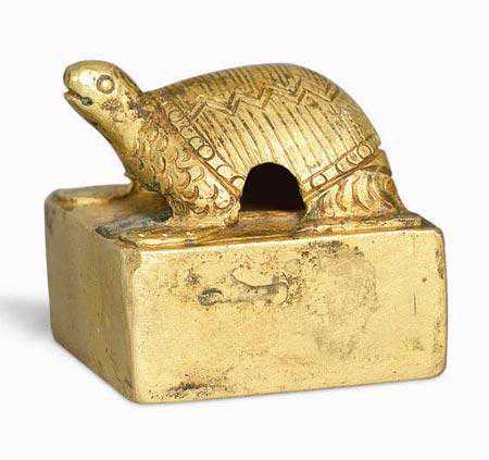 古代的玺印大多有钮、以使在钮上穿孔系绶,系在腰带上,这就是古代的"佩印"方式。自汉代开始,以龟、驼、马等印钮来分别帝王百官。例如高级官史使用龟钮、驼钮、蛇钮则是汉魏晋时授与兄弟民族等官印常见的钮制。历代钮制形式为丰富,其中以坛钮、鼻钮、复斗钮为最常见,现将部分钮制列举于右,以见一斑。