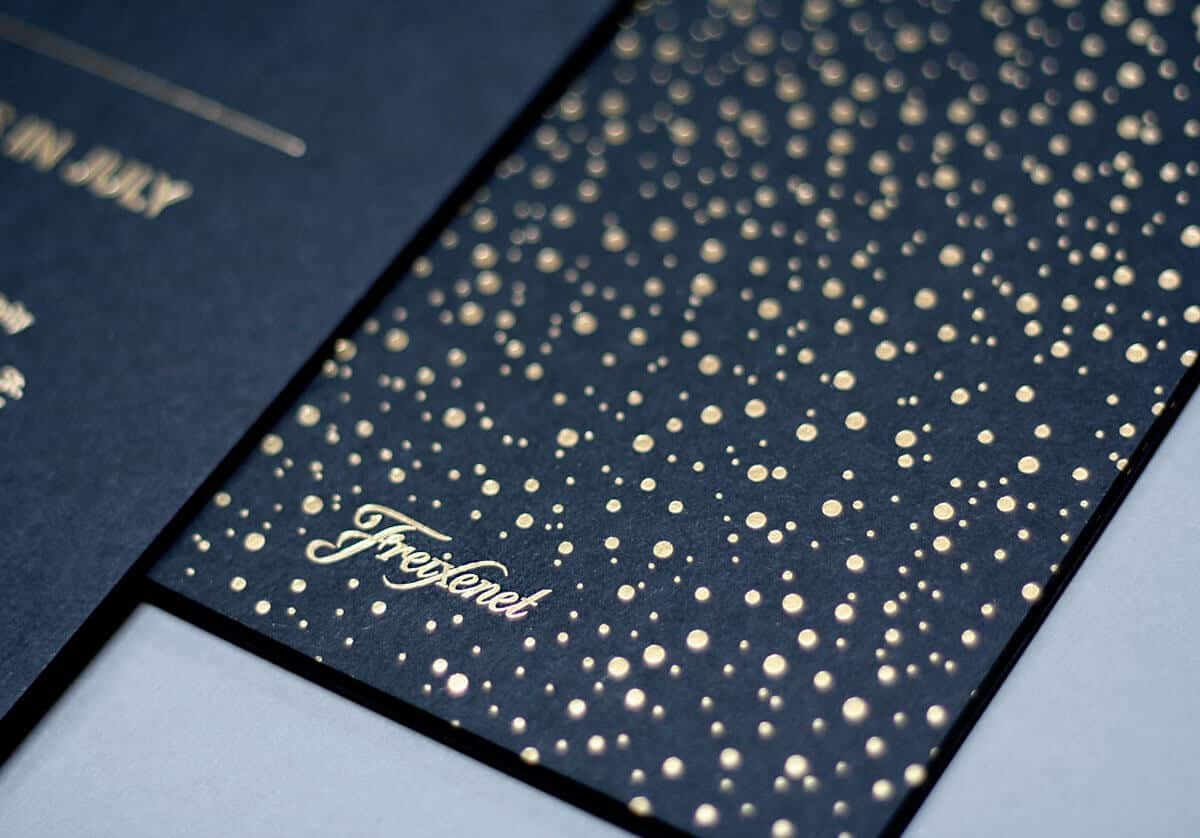 名片是该品牌最重要的销售工具,因此在名片设计上无不用尽巧思设计出抢眼独特的名片设计,其中将名片烫金的后加工是最为人所知的作法。