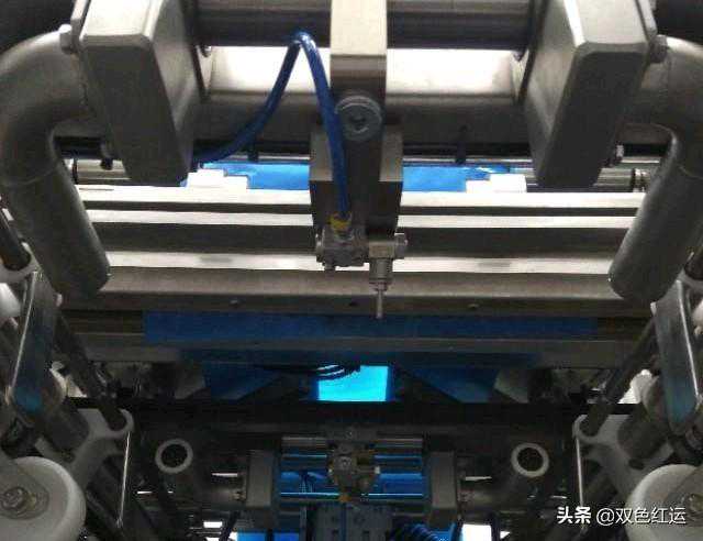 ①开启输送带,核对下箱通道内纸箱版本号与生产底单上版本号是否吻合。纸箱经输送带进入套袋机内,到达指定位置,卷膜处于纸箱两侧中心。(数字3手柄根据纸箱长度可以调整挡块具体位置),传送带上纸箱挡块处于上档状态。
