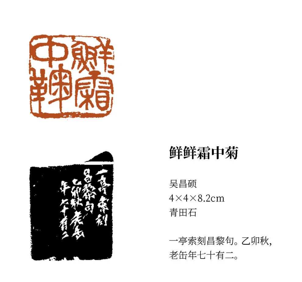 晚清民初书画篆刻家。初名俊,又名俊卿,初字香补,字昌硕,后以字行;又字仓石、苍石,号缶庐、老缶、苦铁、大聋、石尊者、破荷亭长、芜青亭长、五湖印匄等,早期印款,曾署剑侯、苦苕。浙江安吉人。清末曾任江苏安东(今涟水)令,一月即弃去。寓居苏州、上海。工书法、擅石鼓文。篆刻以秦汉鉨印、封泥、瓦陶等文字入印,并独创厚刀钝刃,切冲入石,雄浑苍劲,一洗浙、皖成规,创为一派。善画,特擅花卉,近效任伯年,远法陈淳、徐渭、朱耷,参以篆书笔意入画,笔酣墨饱,气势磅礴,不落前人窠臼,自出新貌。吴隐、丁仁、王禔、叶为铭于1904年创建西泠印社,虚社长一席,1913年始公推他为首任社长。歿后陈三立为撰墓铭,冯幵为撰墓表。著有《缶庐集》。辑有《朴巢印存》《苍石斋篆印》《齐云馆印谱》《篆云轩印存》《铁函山馆印存》《削觚庐印存》《缶庐印精拓》等。