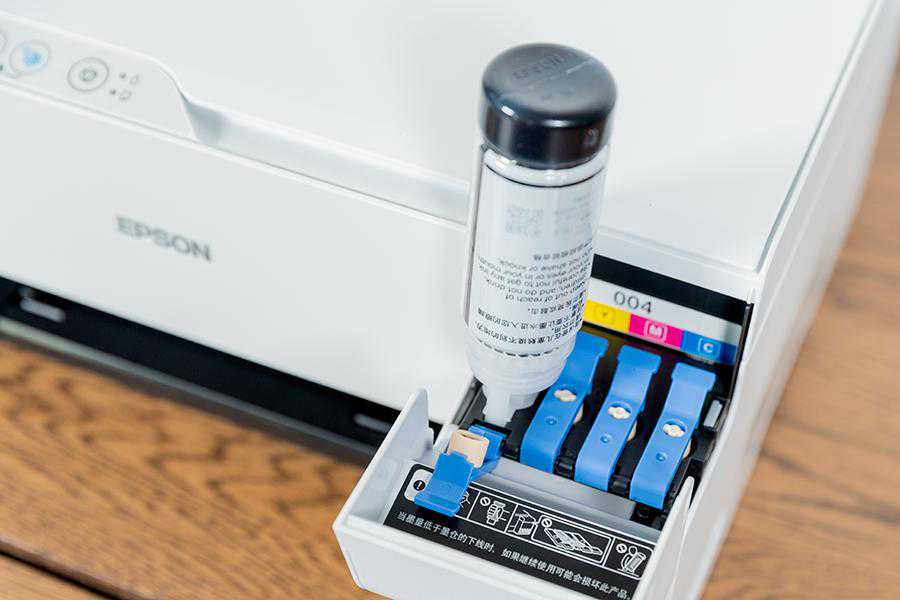 不过这个问题却在爱普生L3151打印机上不会存在,原因在于这款打印机的墨仓设计做了优化处理,墨仓的加墨口CMYK四个颜色的标记非常显眼,同时这四个加墨口凹槽设计还不一致,从而在源头上杜绝了用户加错墨水的可能性,所以你要是在加墨水时发现怎么都插不进凹槽的话,那就不要大力出奇迹了,仔细核对一下墨仓与颜料是否对应一致吧。