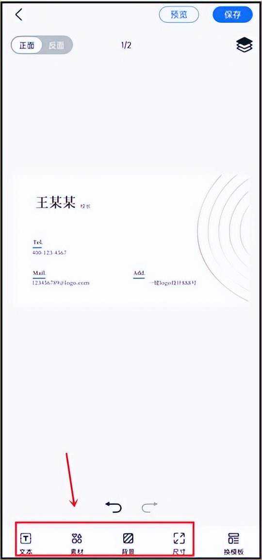第四步:如果还想细化名片上的图案、装饰等素材的话,在界面下方都能找到相对应的选项。