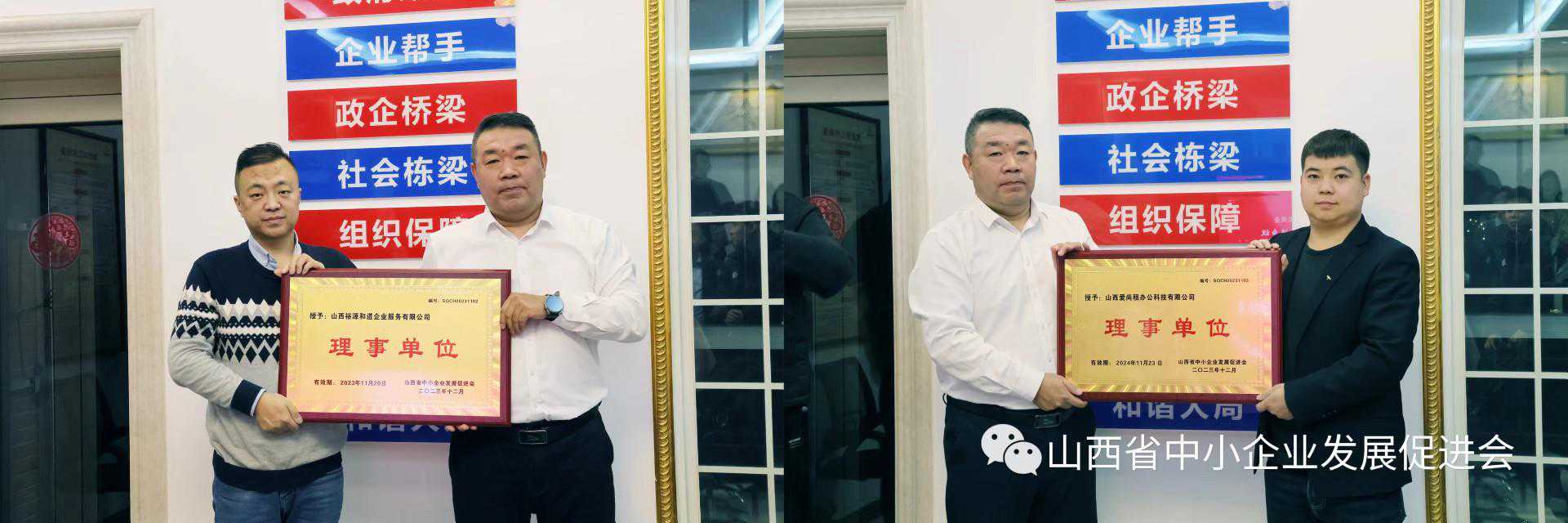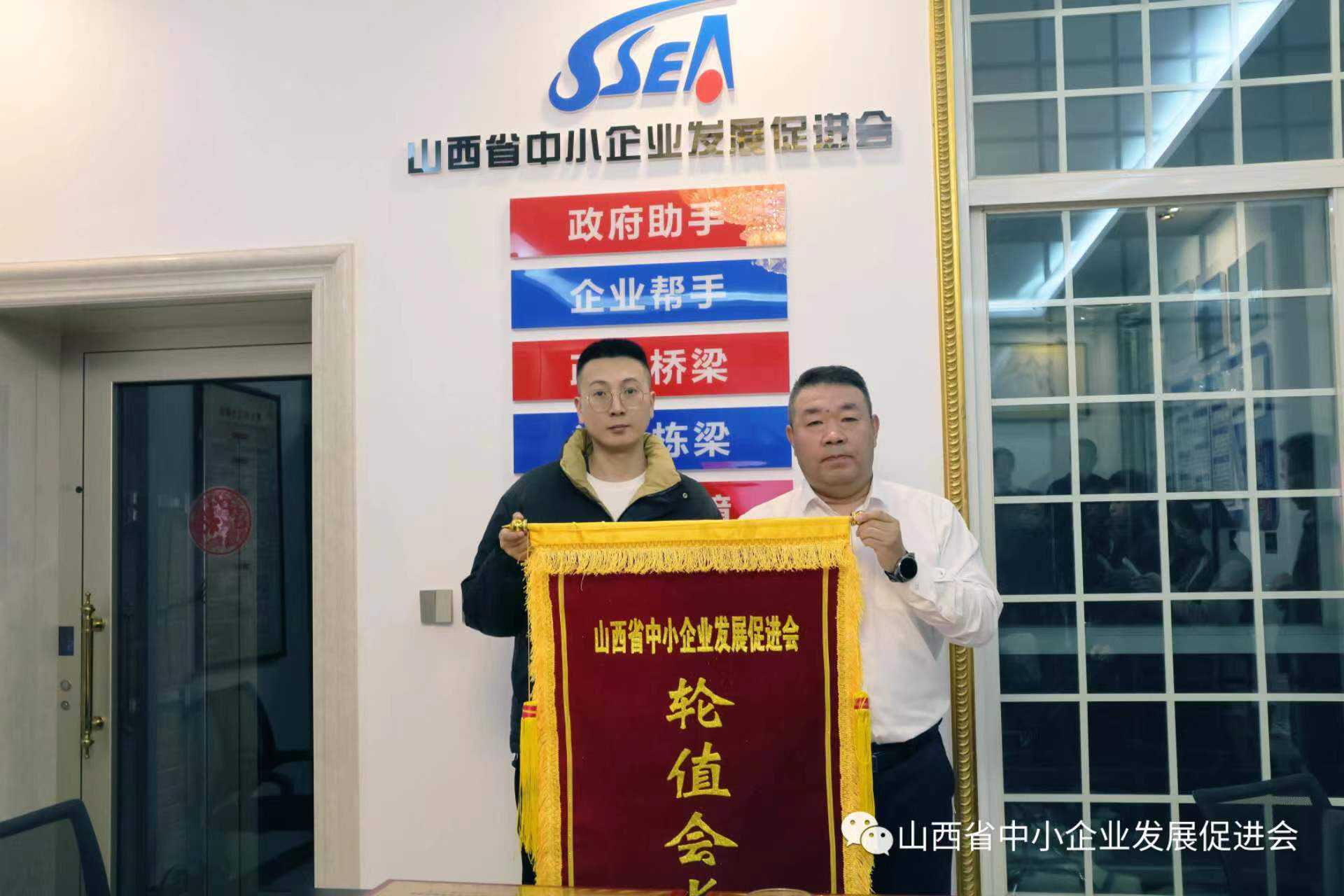 交流探讨结束后,宋宏会长向山西国炜建设有限公司副总经理张宇授予12月轮值会长旗帜;授予山西裕源和道企业服务有限公司副总经理范志勇理事会员单位牌匾;授予山西爱尚租办公科技有限公司总经理王锦理事会员单位牌匾。