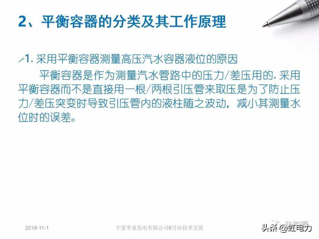 1、平衡容器水位测量原理2、双室平衡容器3、内置式平衡容器4、汽包水位测量5、DLT1393-2014火电发电厂锅炉汽包水位测量系统技术规程