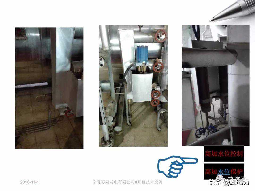 (2)汽包水位与水位计之间偏差较大,水位计一般适用于启动过程和低负荷阶段,而在高负荷阶段,则以变送器为主,电接点仅作参考。但若偏差较大,超过100mm以上,就应检查二者的零水位定义是否一致,所设的H值是否与实际值不同,平衡容器水温设置是否正确,电接点水位计保温是否合乎要求。