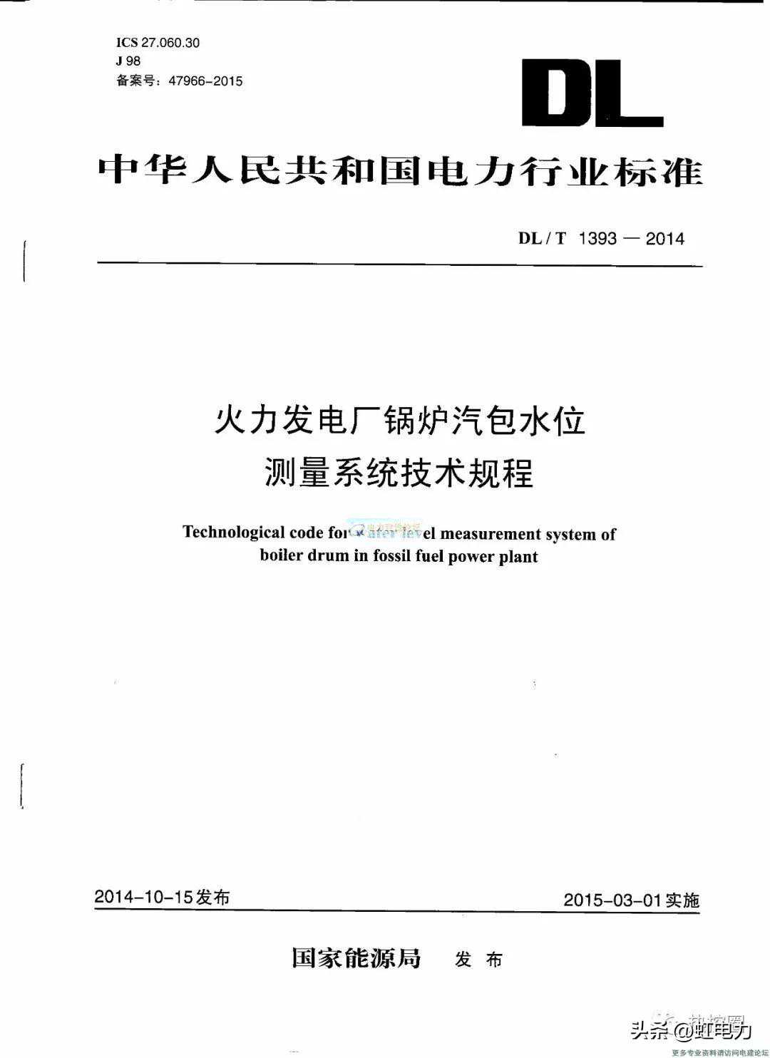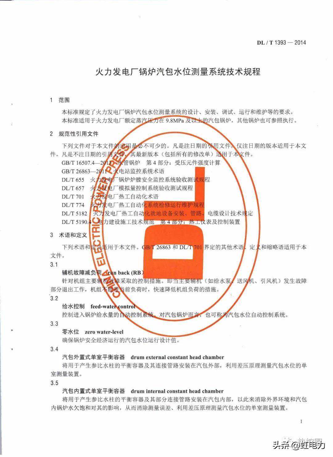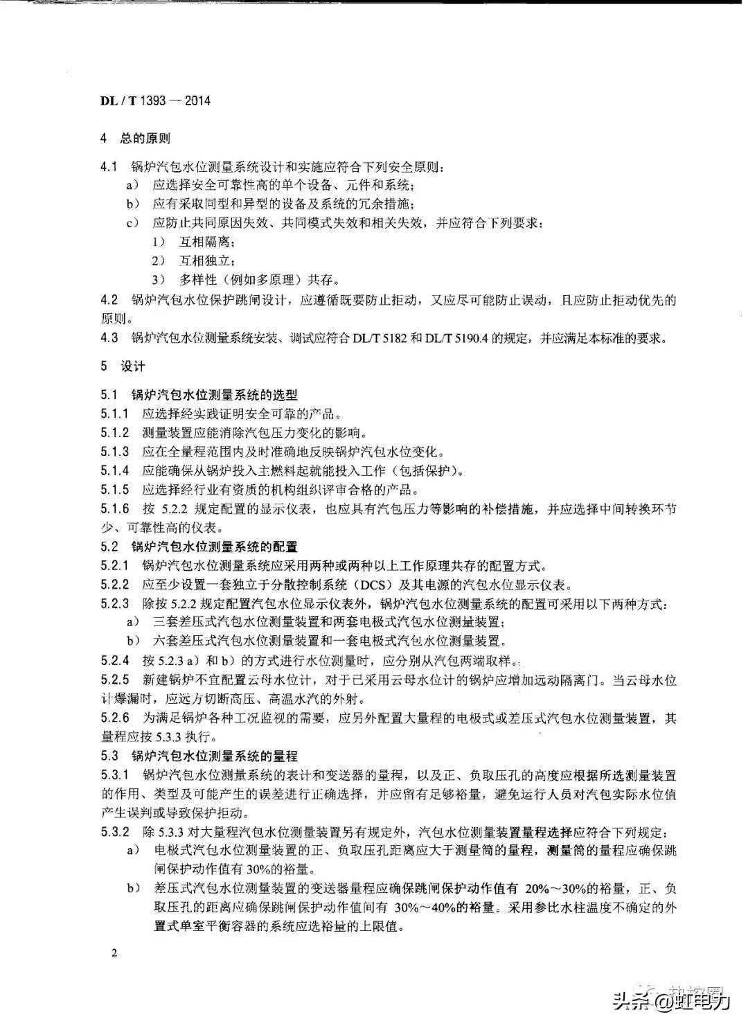 第五部分DLT1393-2014火电发电厂锅炉汽包水位测量系统技术规程