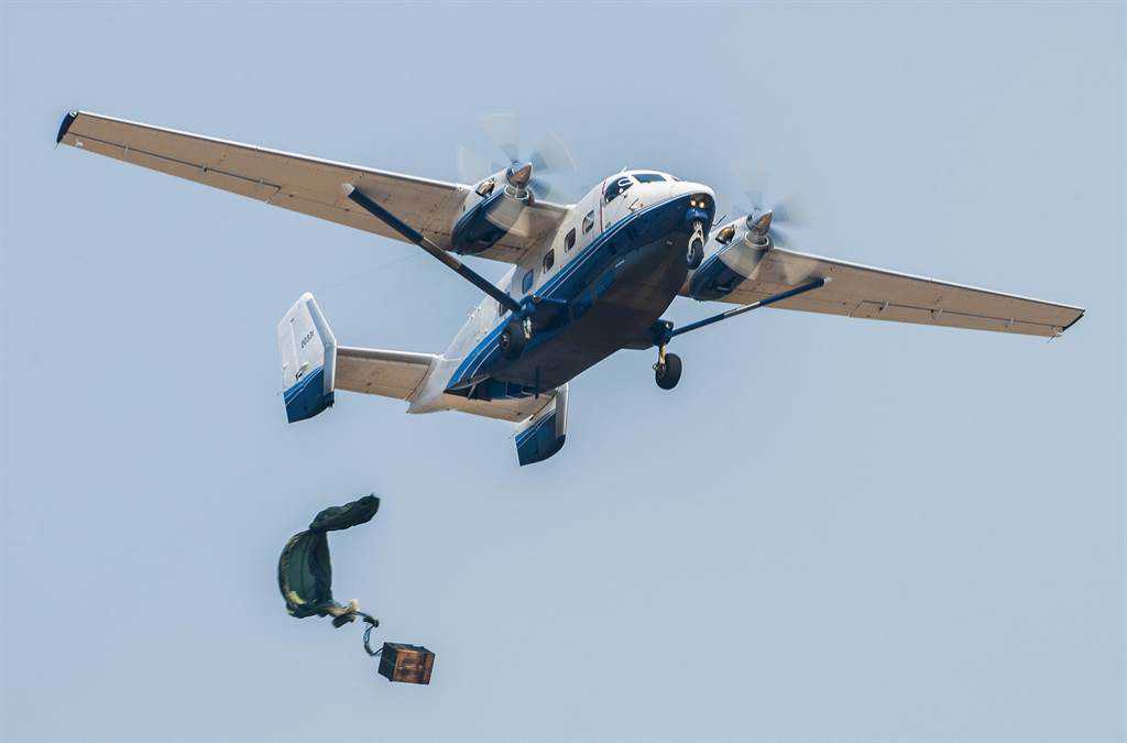 空投物资的美国空军C-145