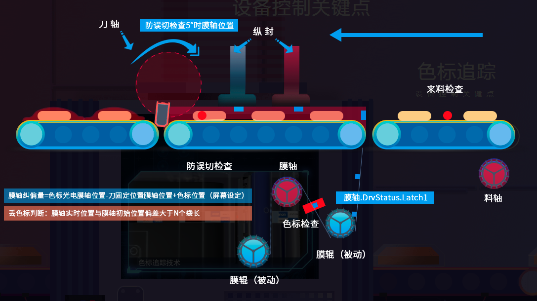 色标追踪的特点是,能按照纠偏方式选择纠膜,保证主虚-刀虚-刀轴相位始终保持不变。
